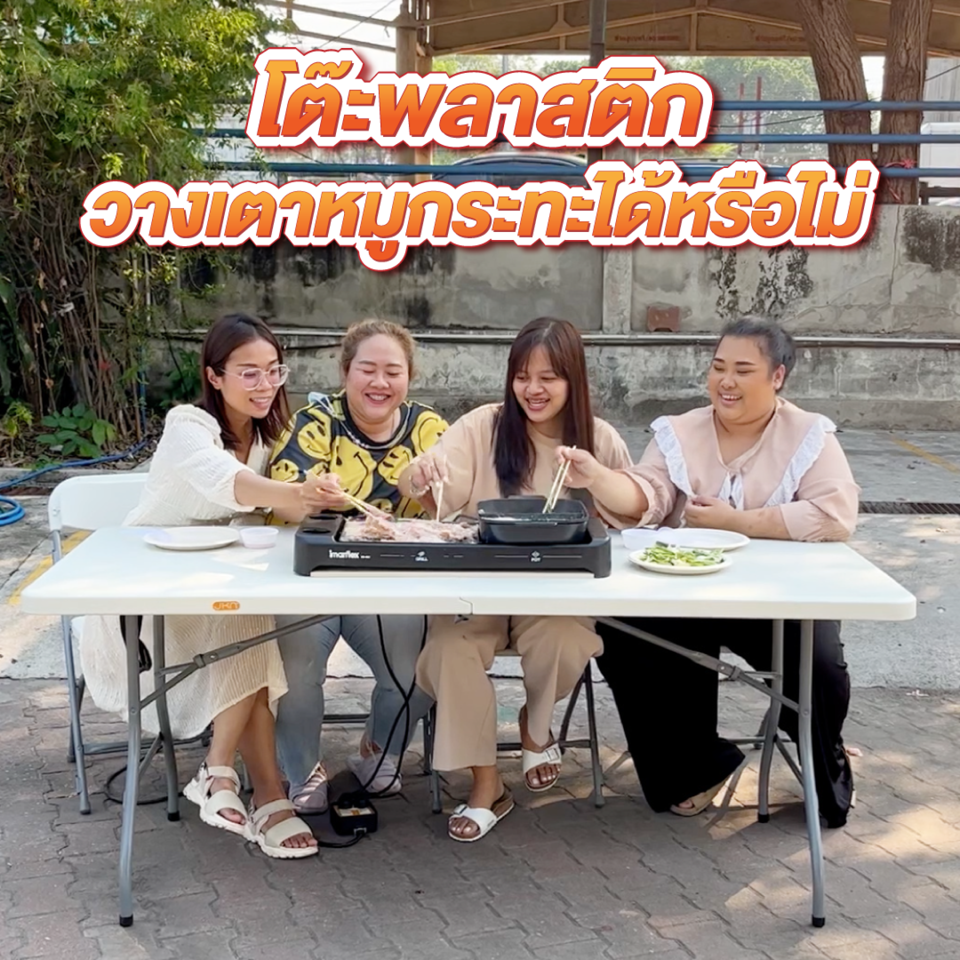 ลูกค้าหลายคนสงสัยโต๊ะพับ JKN ใช้วางเตาหมูกระทะได้ไหม?