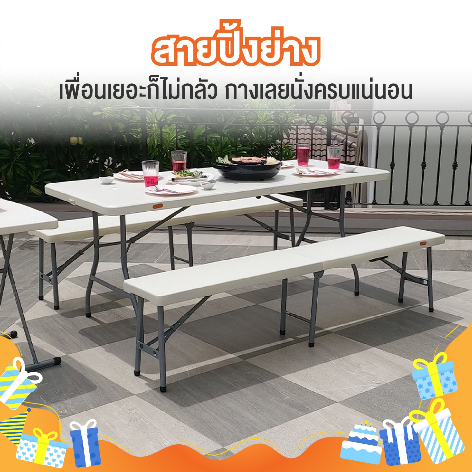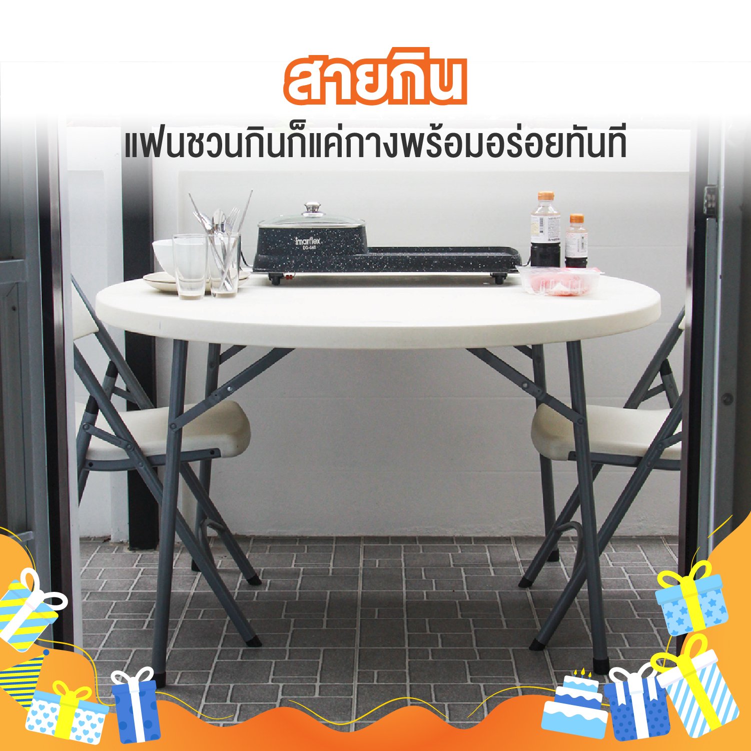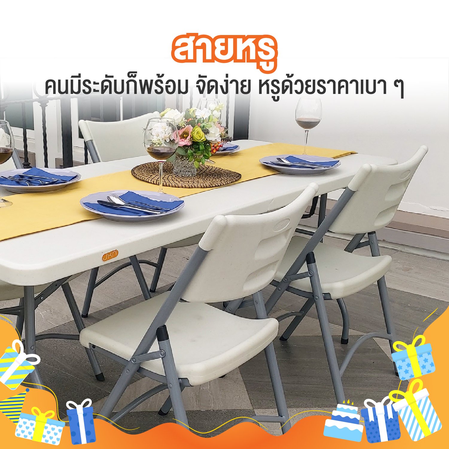จัดตี้ที คนต้องเยอะ โต๊ะพับ JKN ก็ไม่หวั่น มาเยอะแค่ไหนก็รับได้ แค่กางโต๊ะพับรุ่น T-180BFW นั่งได้สูงสุด 8 คน แถมยังพับครึ่งได้ มีล้อลาก จะกาง จะพับ ก็ง่ายต่อการใช้งาน ไม่เปลืองแรง มีพลังไว้ปาร์ตี้ปิ้งย่างได้อีกเยอะ