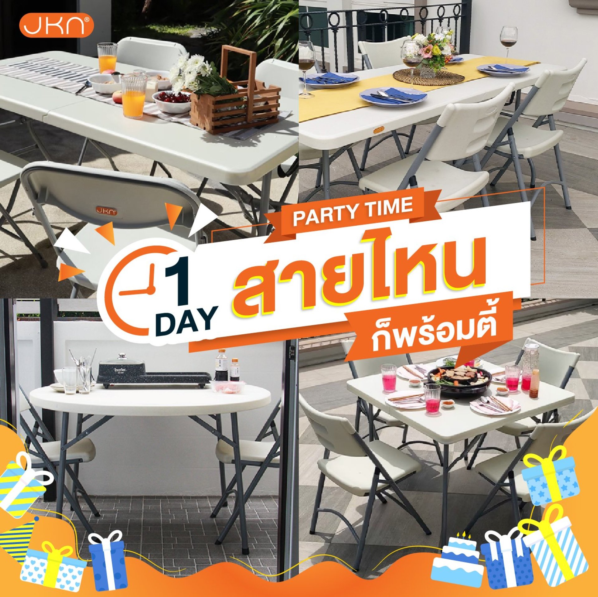 ปัญหาจัดตี้ คือไม่มีโต๊ะรองรับทุก lifestyle ไหนจะเวลาที่มีน้อย แต่ต้องรีบจัด JKN ตอบโจทย์ ทุกรุ่นพร้อมใช้งาน แค่กางก็ใช้ได้เลย น้ำหนักเบา พับเก็บได้สะดวกทุกการใช้งาน เพราะใน 1 วัน โต๊ะพับ JKN พร้อมใช้งานทุกตี้